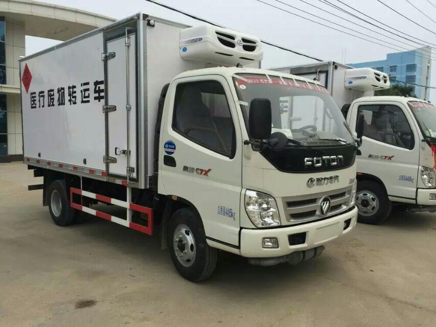 湖北程力東風多利卡醫(yī)療廢物轉運車: 配備東風多利卡經(jīng)典1730駕駛室,朝柴100馬力,2噸前橋,3.5噸后橋,萬里揚5檔變速箱,700鋼絲胎,氣剎,動轉,ABS。車廂為密閉式結構,內(nèi)腔材料為不銹鋼板,防銹、防水耐腐蝕、易清洗和。車廂內(nèi)部裝有低溫殺毒,紫外線殺毒,噴霧殺毒設備,可隨時對車廂內(nèi)部進行。廂體兩側設有桶固定裝置,保證車輛緊急啟動、停車或事故時廢棄物收集桶不會和翻轉。 湖北程力福田奧鈴醫(yī)療廢物轉運車: