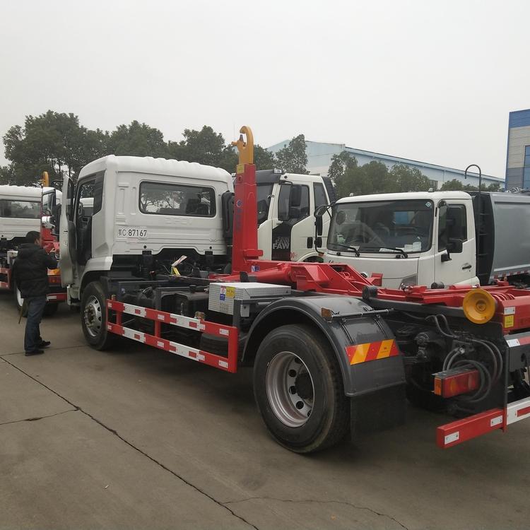 東風天錦16噸勾臂垃圾車:底盤配置:國六東風天錦拉臂車專用底盤,油耗低﹑動力強勁;變速箱為東風六檔,故障少﹑性能優良;前橋4.5號,后橋9噸,前后橋為東風德納加強型,速 度快﹑承載力強,珍珠白帶臥鋪駕駛室,軸距4.5米/4.7米,康明斯210馬力和239=0馬力或者玉柴200馬力,原裝空調,帶ABS,帶行車記錄儀。 東風天錦16噸勾臂垃圾車上裝配置 上裝系統由我公司結合運用國內外先進技術傾力打造,具有以下優點 1. 控制系統:手動要無線控制操作,快捷安全﹑專有技術,行業口碑優良; 2. 液壓系統 油缸﹑泵﹑閥系我公司特殊設計,國內知名工廠生產,匹配合 理﹑性價比高;關鍵部位采用進口密封件,性能穩定﹑質量可靠; 3. 安全保護 (1)主油缸特設內置雙向卸荷閥,行程末端有效降低系統壓 力,保護整個液壓系統及拉臂經久耐用;(2)升降系統配置平衡裝置,空載 或重載均可勻速運動,避免強烈沖擊造成車輛或設備損壞;(3)液壓系統及 各分支油路均設置雙向過載保護,根據各運動部位實際工作狀況調整設置額定 壓力,有效避免系統超載或使用不當造成車輛非正常損壞;(4)液壓系統均 設置油路防爆鎖止裝置,防止因油管爆裂出現安全隱患,保證人員及車輛安 全;(5)拉臂上裝設置加強型液壓箱體鎖緊裝置,正確使用確保運輸安全。 4. 互鎖保護 各動作關聯互鎖保護,防止誤操作引起液壓或機械故障,消除 安全隱患,延長車輛使用壽命; 5. 拉臂結構 拉臂結構件系采用高強鋼制造,局部特殊處理,承載力強﹑不 易變形。 6.拉臂上裝 拉臂上裝均經拋光除銹處理,多道工序上漆,確保外觀及色澤 符合要求;拉臂上裝總成均經過專用臺架試驗及重負荷負載試驗,確保品質。 湖北程力國六天錦勾臂16噸垃圾車(車廂可卸式垃圾車)程力威牌CLW5180ZXXD6型車廂可卸式垃圾車圖片價格:
