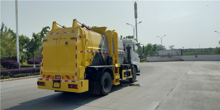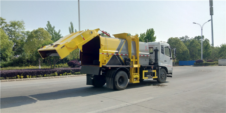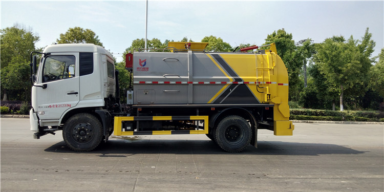 國六東風天錦方罐10-12方餐廚垃圾收集車底盤配置:采用東風天錦系列新款駕駛室,4700mm軸距,搭載國六(國Ⅵ)康明斯210馬力柴油發動機,東風6檔變速箱,9T后橋,10.00R20鋼絲胎,ABS,標配電動窗、中控鎖、鑰匙、日間行車燈、自動落鎖、斷氣剎、定速巡航、瞬時油耗,科技感十足,駕乘更舒適,GB7258新規。 國六東風天錦方罐10方餐廚垃圾收集車上裝配置:罐體容積10方,采用4mm碳鋼制作,圓距形罐體,液壓系統,配拉桿式提升機,可掛120/240升垃圾桶,推鏟卸料,具有干濕分離,罐體尾門液壓打開和鎖緊+手動鎖緊裝置,罐尾設液體自流閥,液位窗,后門液壓開啟。用于運輸液態垃圾,其特點操作簡單,密封性好,無泄漏,無異味,常用于餐館的垃圾轉運處理。 此款環衛垃圾車可加裝配置:1、罐體內部固液分離功能(全推推板,不銹鋼泔水分離網板);2、罐內加熱功能(用于嚴寒地帶防止罐內餐飲垃圾凍結凝固,采用柴油燃燒機加熱,加熱速度快效果好,可設置高低溫實現自動溫控);3、稱重功能(垃圾桶提升架稱重計量);4、罐體清洗裝置(加裝高壓泵與高壓水槍);5、吸污功能(利用真空吸污裝置直接將餐飲垃圾吸入罐體)