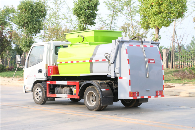 凱馬餐廚垃圾車又稱廚余垃圾車或者泔水車,是鳙魚收集和運輸生活垃圾,食品垃圾(泔水)及城市淤泥的車輛,具有自裝,自卸,固液分離,運輸垃圾車自動化程度高,密封性好,操作簡單,無污水泄露和異味的散發(fā)等特點 國六凱馬藍牌餐廚垃圾車配置:常用整車型號:CLW5040TCAKL6|軸距2800,或者3300濰柴130馬力,容積3立方。固液分離、全推板、加熱裝置可選,實車公告,環(huán)保已下發(fā),上戶無憂 罐體容積3方,采用4mm碳鋼制作,方形罐體,罐體與后蓋上部采用鉸鏈連接,后蓋可利用液壓油缸打開卸料;罐體右側前部裝有掛桶提升機構裝卸桶裝垃圾,罐體底部安裝液壓油缸實現(xiàn)罐體舉升自卸。后蓋采用液壓開啟、鎖緊。操作方式為室外手動液壓操作。凱馬3方藍牌餐廚垃圾車底盤配置:濰柴發(fā)動機,六檔變速箱,2800軸距,1046后橋,6.50R16鋼絲胎,新款五十鈴1680白色單排可翻轉駕駛室 我公司生產(chǎn)的凱馬餐廚垃圾車優(yōu)勢: 其外觀造型美觀大方。垃圾箱橫向截面為圓柱框架、縱向截面為梯形框架,兩側及頂面均為圓弧造型,美觀大方,裝載能力強。且能實現(xiàn)箱內餐廚垃圾油水的初步分離和垃圾減容,并配備有大容量污水箱,垃圾箱與后門總成之間密封性好。垃圾箱與后門總成之間采用特制型橡膠條密封,密封性好,了二次污染。可靠性與安全性。采用電、液聯(lián)合控制,并設置了安全保護開關,保證了各機構動作準確、可靠。發(fā)動機功率輸出自動控制。發(fā)動機功率輸出實現(xiàn)全自動控制,非作業(yè)時,發(fā)動機怠速狀態(tài),作業(yè)時,發(fā)動機自動加速,滿足作業(yè)功率的要求。避免了功率損耗和系統(tǒng)發(fā)熱,耗油降低,經(jīng)濟性好。 機動性強。作業(yè)罐體和作業(yè)平臺利用底盤承載,任何需要對泔水進行處理的地方,只需一個司機一個作業(yè)工人就能隨叫隨到。其機動作業(yè)能力好。 湖北程力國六凱馬3方藍牌餐廚垃圾車程力威牌CLW5040TCAKL6型餐廚垃圾車CLW5040TCAK6型餐廚垃圾車圖片價格: