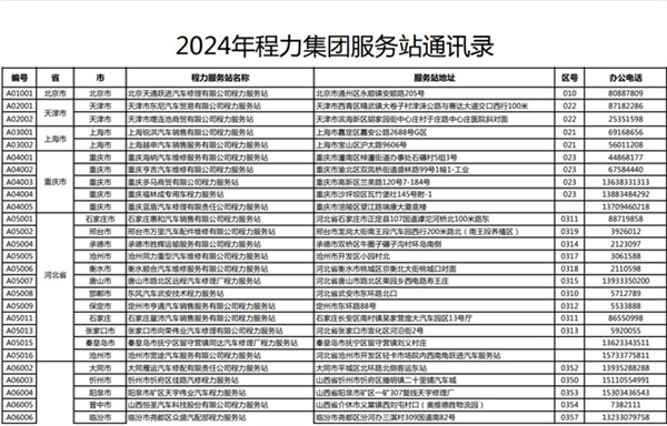 程力專用汽車股份有限公司(程力威)牌專用汽車全國服務(wù)站名錄