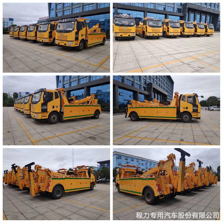 湖北程力國六解放J6托吊連體清障車程力威牌CLW5180TQZC6型清障車廠家配置: 湖北程力國六解放J6托吊連體清障車底盤配置:解放J6平頭排半豪華駕駛室,可選大柴220馬力或240馬力發動機,6檔變速箱,280雙層車架,加厚高強度前保險杠,前霧燈,可調水晶大燈,廣角后視鏡,前路面視鏡,10.00R20原鋼絲胎,原廠空調,ABS。 湖北程力國六解放J6托吊連體清障車專用配置:可選8T16D上裝或10T16D聯體式上裝,進口閥,二節式六邊型吊臂,三節托臂,分體式車廂,雙側聯動操作裝置,兩個8噸液壓卷揚,35米鋼絲繩,,直徑16mm,配四套鋼叉,一套拖叉套,一套鋼板吊耳拖叉,一套抱胎裝置,一個長排工程警燈,輔助燈一套,輔助氣管總成一套。 湖北程力國六解放J6托吊連體清障車程力威牌CLW5180TQZC6型清障車圖片價格: