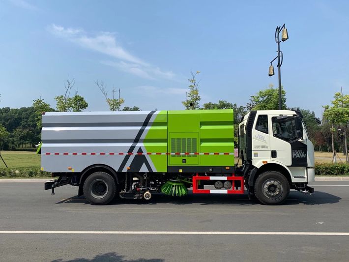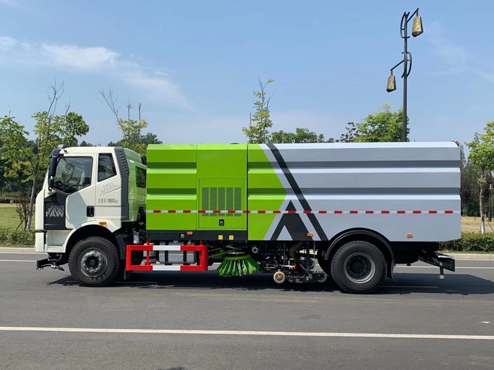 帶2個(gè)中置掃盤;中置超寬吸嘴;雙層吸塵筒; 康明斯170馬力副發(fā)動(dòng)機(jī);臺(tái)灣液壓閥;大力馬達(dá);德國高壓水泵 (前沖/側(cè)噴/中噴/后噴霧)/側(cè)沖洗水槍/垃圾箱自潔裝置); 萬向高壓路沿清洗;威龍低壓泵(前沖),氣動(dòng)球閥控制; 4mm不銹鋼垃圾箱;不銹鋼水箱;德國控制器;尾部箭頭燈; 機(jī)油、垃圾箱、水箱均帶防溢或低位報(bào)警裝置;倒車及洗掃狀態(tài)室內(nèi)監(jiān)視器; 多種語音提示;倒車自動(dòng)保護(hù)、防傾倒垃圾翻車保護(hù)、檢修安全保護(hù); 20m高壓沖洗卷盤;刷臂轉(zhuǎn)動(dòng)機(jī)構(gòu)使用德國進(jìn)口高新耐磨工程隔套,免打黃油; 冷彎無縫液壓油管;運(yùn)動(dòng)控制器一鍵電腦控制。洗掃寬度3.5m;吸入粒度p110mm。 湖北程力國六解放洗掃車多方位圖片: